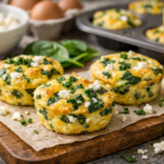 Fluffy spinach and feta egg muffins baked to golden perfection - a healthy, protein-packed breakfast option.